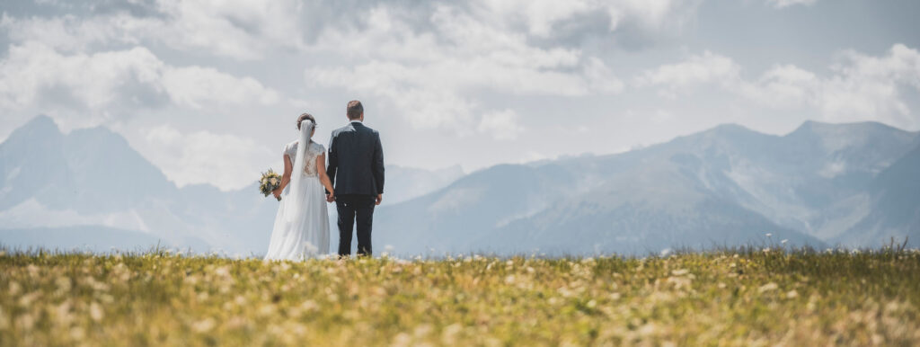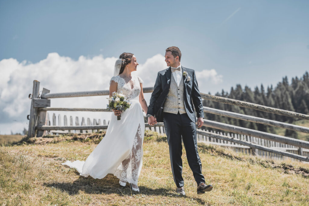 Hochzeit auf der wunderschönen Roneralm in Südtirol Roneralm: Sonja & Felix haben inmitten der Berge das JA-Wort gegeben.